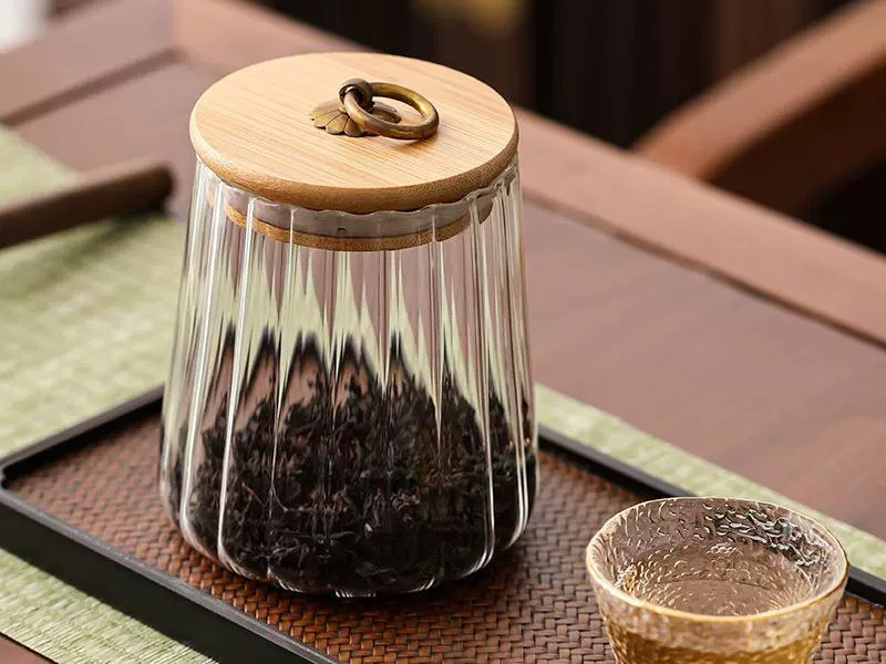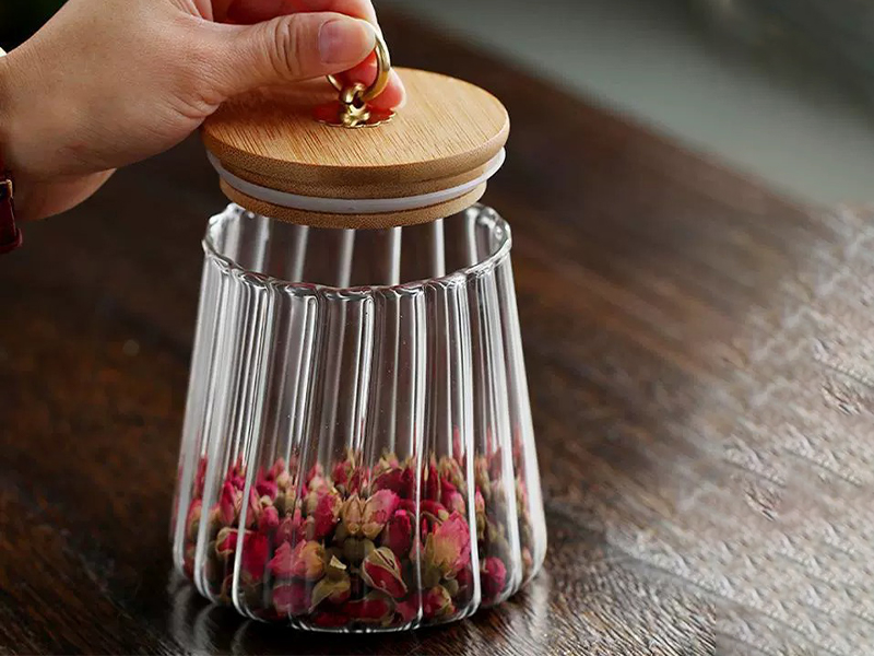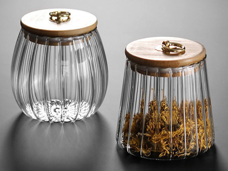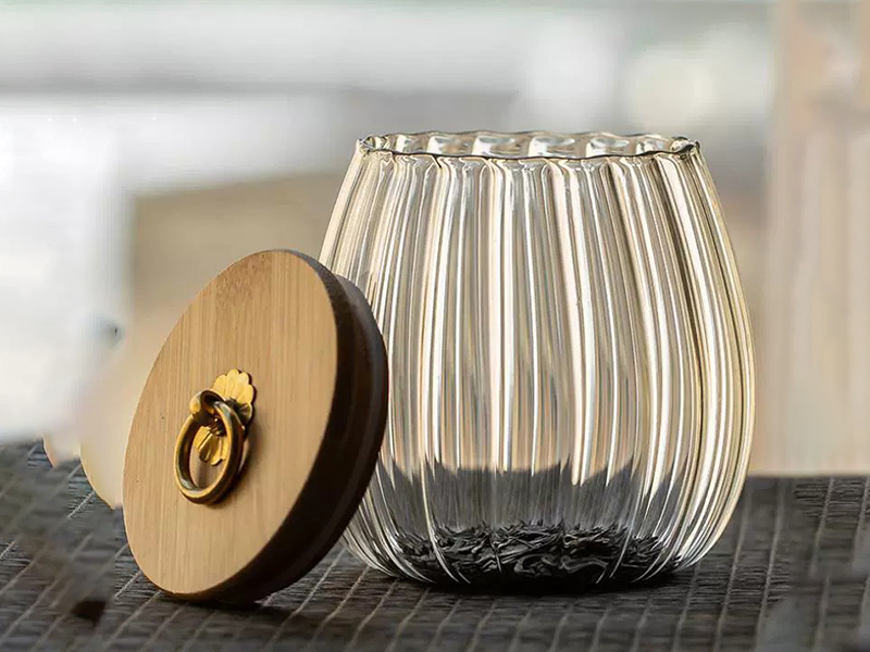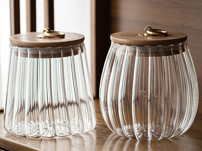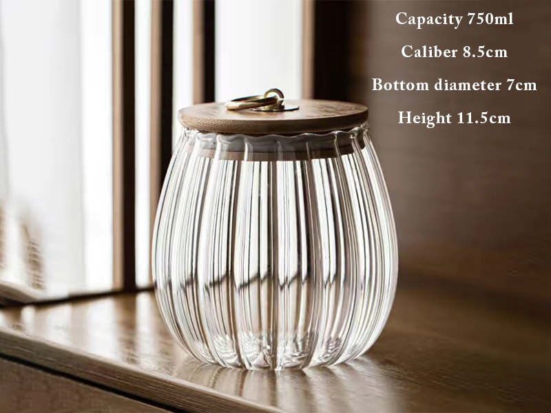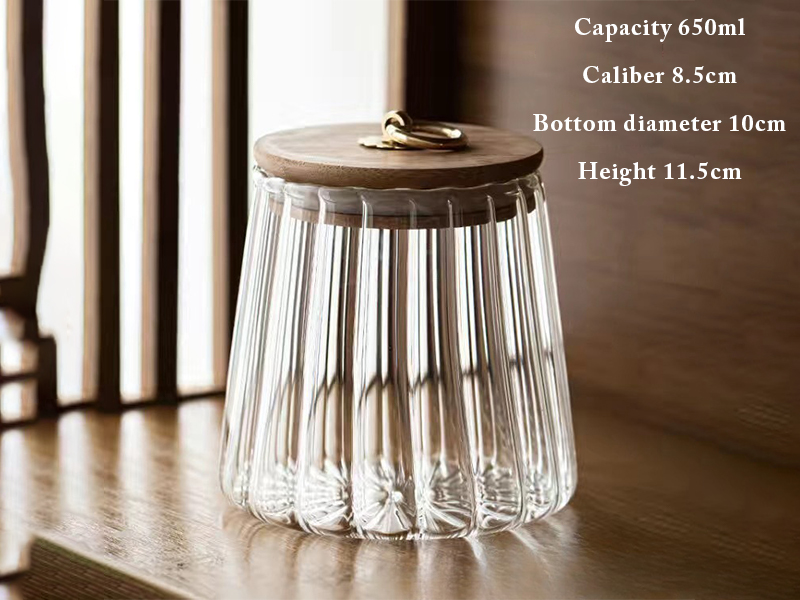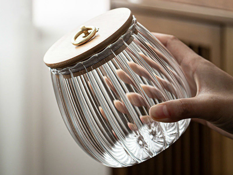 - Material: High-quality clear ribbed glass + natural bamboo lid + brass metal ring pull